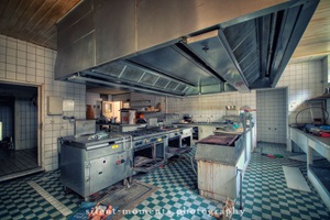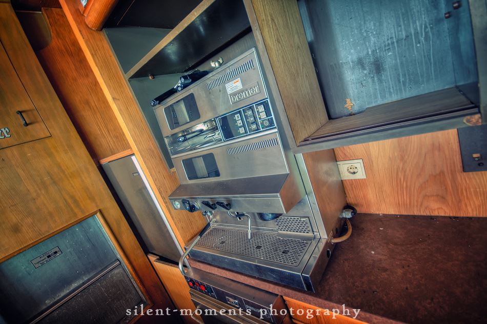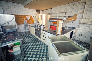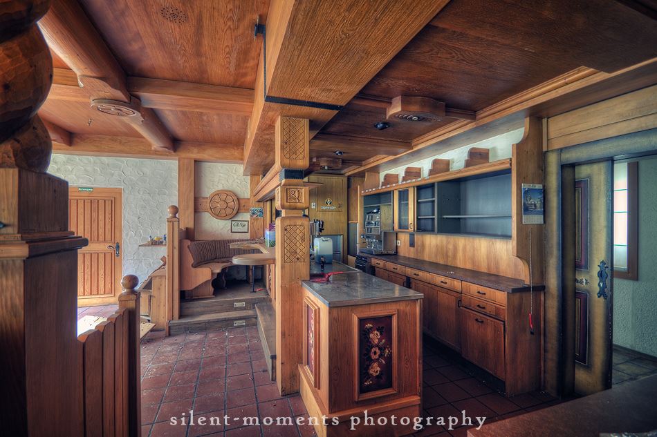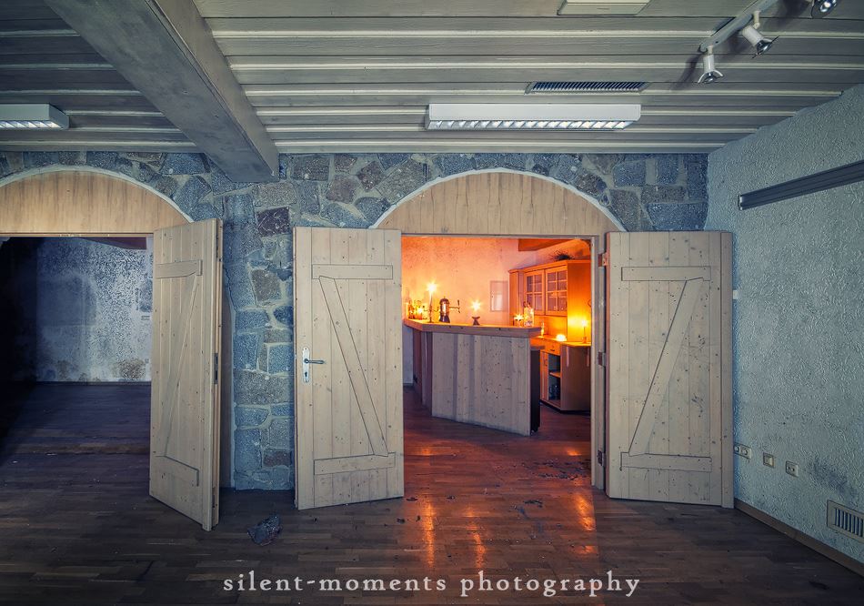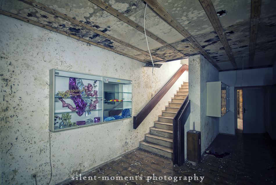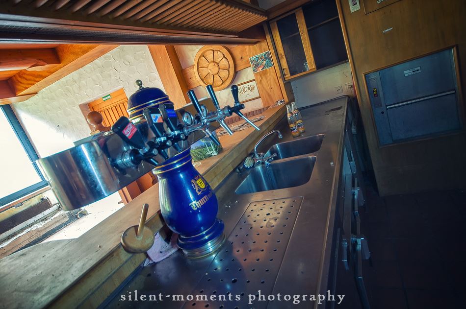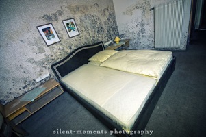 Als wir dieses Hotel betraten machte sich erst einmal die Ernüchterung breit. Die erste Etage war komplett entkernt aber dann kam die große Überraschung. Wir fanden auf der zweiten Etage möbilierte Zimmer vor, teilweise waren die Betten noch gemacht. Man hatte in dem Moment das Gefühl gleich checken neue Gäste ein. Auch im Erdgeschoß kein Vandalismus, dafür einen schönen Gastraum mit Tresen und Zapfanlage, die Küche noch komplett und im Keller einen Saunabereich. Aufgegeben wurde dieses Hotel 2005.