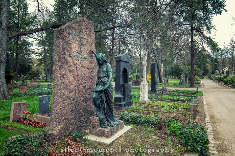 Einzelne Grabmäler wurden von bekannten Bildhauern geschaffen. Von Robert Diez stammen das Grabmal von Georg Treu aus dem Jahr 1904 sowie die Engelsfigur für die Grabstätte der Familie Ahrenfeld, die er 1894 anfertigte. Paul Wallot schuf die Grabstätte der Schauspielerfamilie Schweighofer, wobei die Grabfigur und die Grabmedaillons von Robert Diez stammen. Die Grabstätte Richter mit einer Christusfigur in Carrara-Marmor wurde von Franz Schwarz geschaffen. Johannes Schilling realisierte die Figuren und Grabmedaillons an der Grabstätte Julius Hermann Pilz, während die Grabstätte Schmidt Adensamer ein Werk von Arwed Roßbach (Architekturentwurf) und Max Klinger (künstlerische Ausführung) ist.