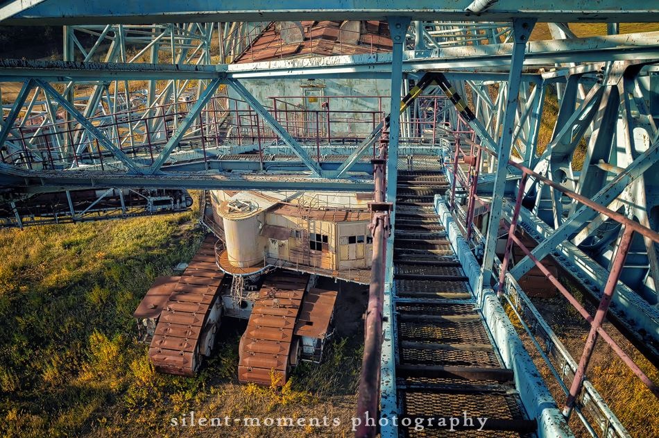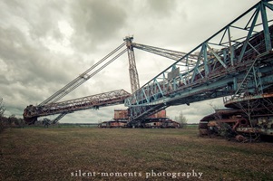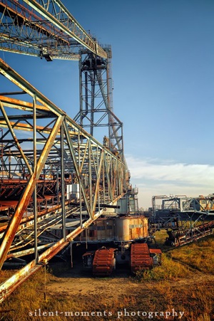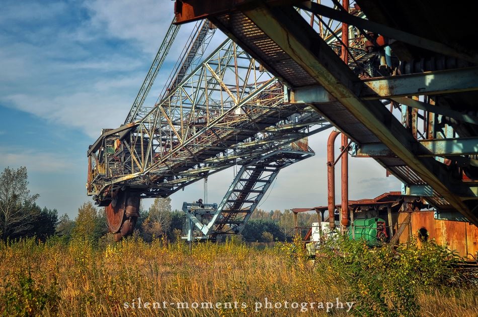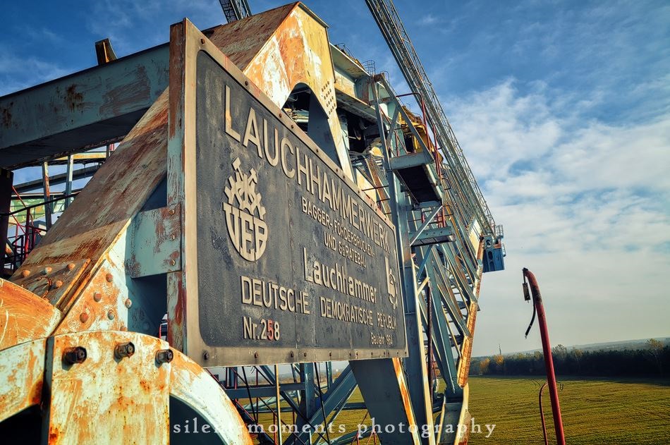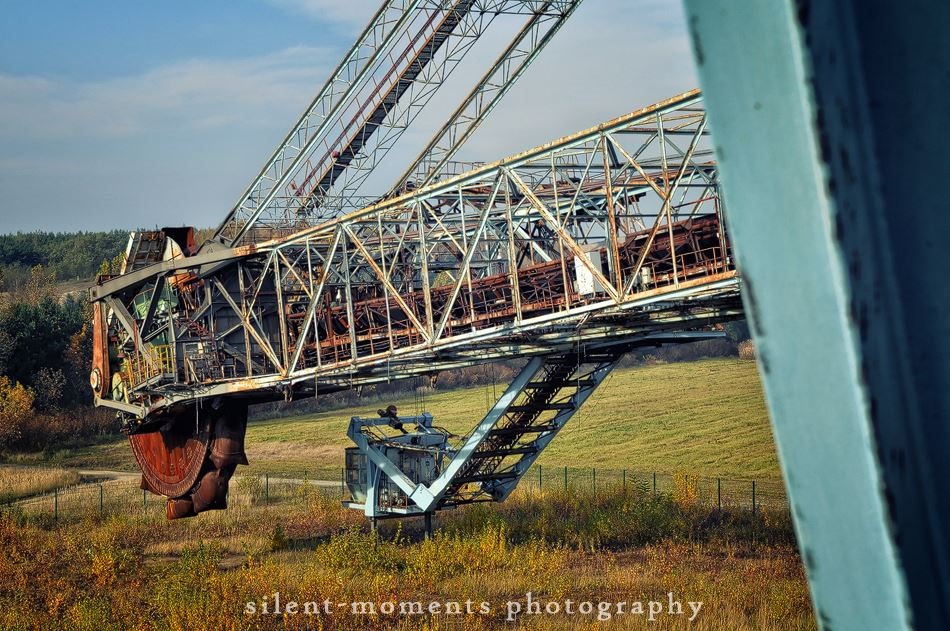 ... oder das sogenannte blaue Wunder. Der Name rührt von der gleichfarbigen Elbbrücke von Loschwitz bei Dresden. Nach über 35jähriger Bergbautätigkeit wurde er im Herbst 2003 zu seinem derzeitigen Standpunkt gebracht und soll dort als Landmarke an den Bergbau erinnern. Der Schaufelradbagger gehört den umliegenden Kommunen.